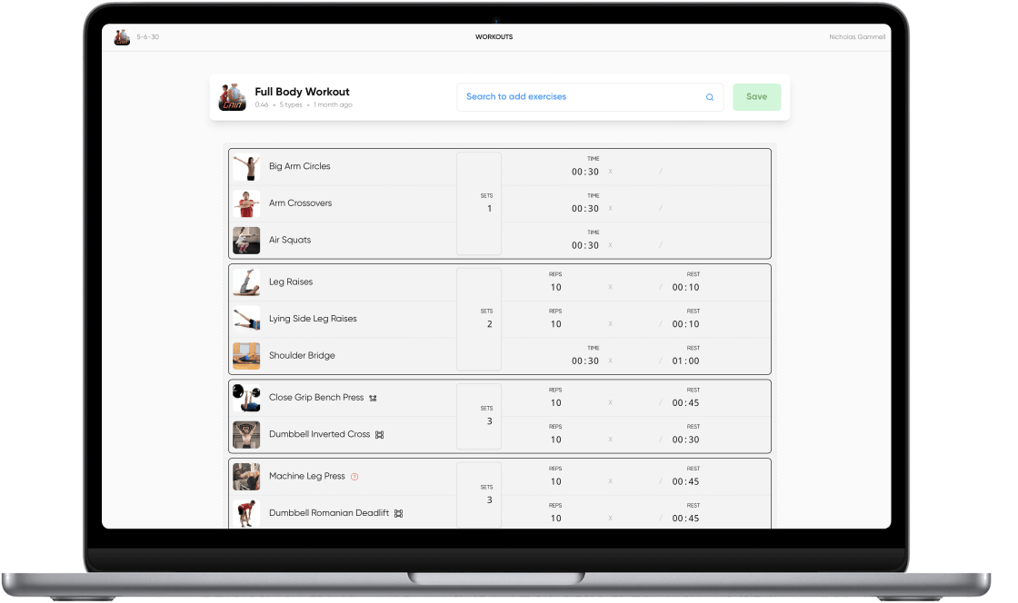*We ran a speed test in Aug 2022 where one person with no prior workout building experience created the same workout on each platform. Calculations assumed 3 new workouts per client per workout phase, 6 week workout phases, and 20 clients per Trainer per year.
